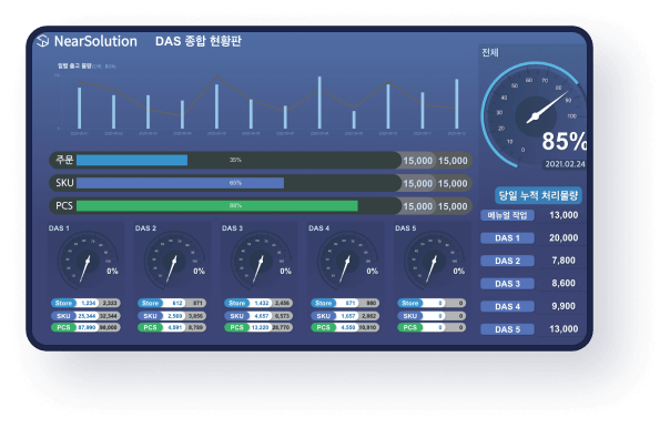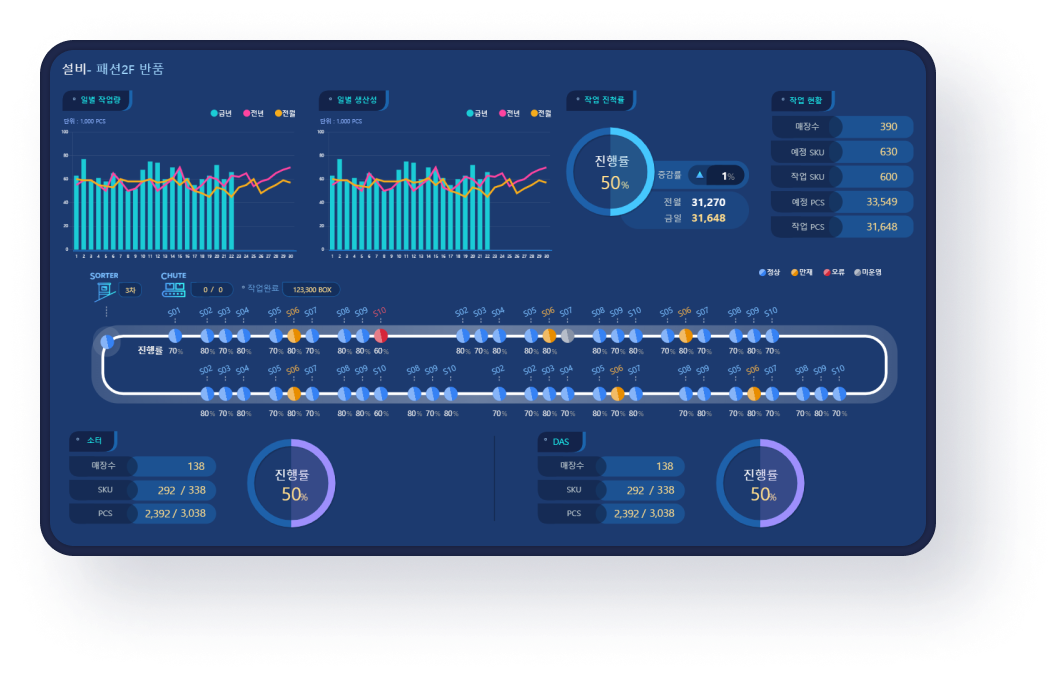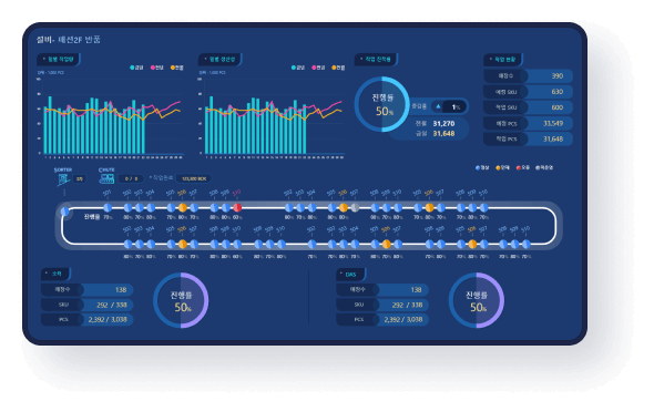 물류센터를 통합하여실시간 작업 상태를 시각화합니다.